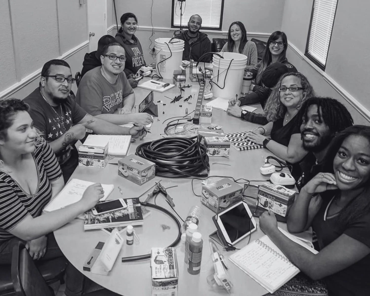 Shown Above: Some of the first hands to get dirty at the farm in California.
