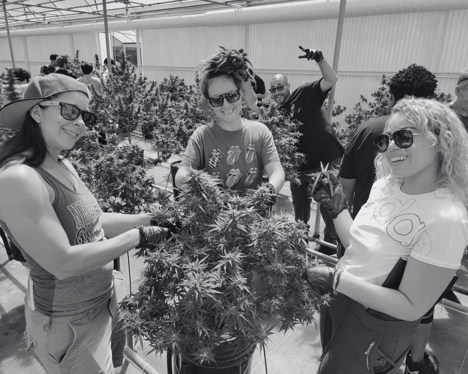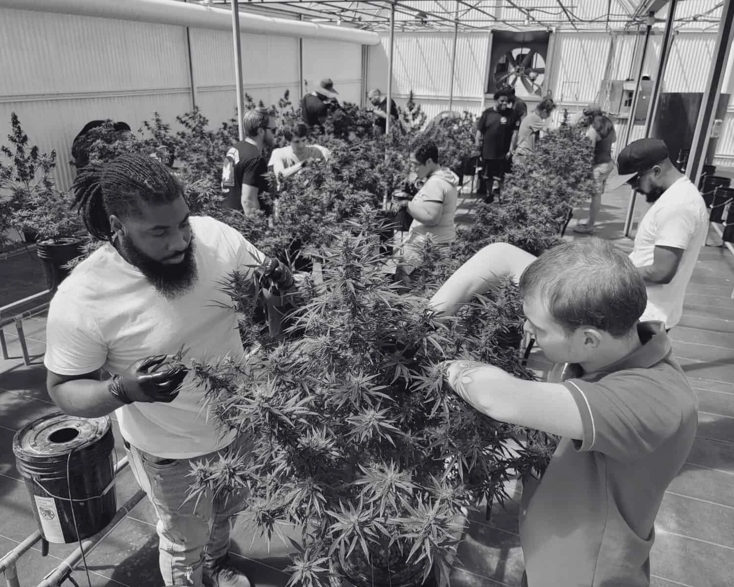 Shown Above: Students learning how to harvest cannabis.